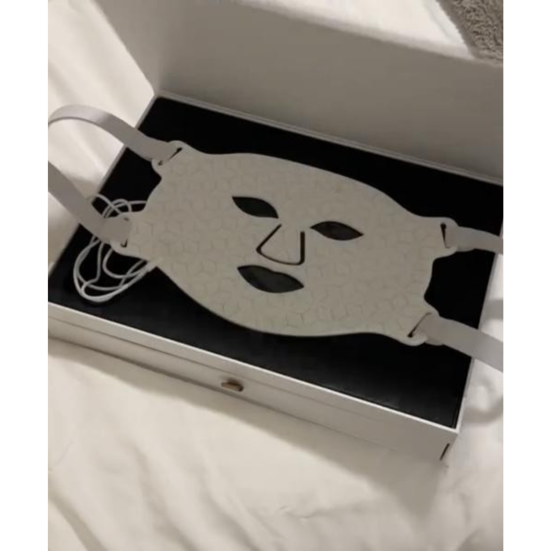 It uses red, blue, green, and yellow light therapy to stimulate collagen, reduce acne, fade dark spots, and calm sensitivity, promoting a smoother, brighter complexion.